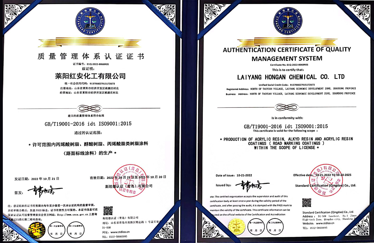 紅安化工經(jīng)過(guò)近二十年的打造和積淀,現(xiàn)已建成了一家專業(yè)研制生產(chǎn)涂料合成樹脂的綜合型工廠,位于山東省半島的腹地--萊陽(yáng)市。公司已通過(guò)了三體系認(rèn)證,即ISO9000質(zhì)量管理體系認(rèn)證和環(huán)境、職業(yè)健康安全管理體系認(rèn)證,并獲得了六項(xiàng)國(guó)家發(fā)明專利,八項(xiàng)實(shí)用新型專利;19年榮獲山東省高新企業(yè)稱號(hào),22年通過(guò)了復(fù)審;22年榮獲山東省瞪羚企業(yè)稱謂,還有其他一些榮譽(yù)稱號(hào)不再一一敘說(shuō)。 公司現(xiàn)有樹脂合成反應(yīng)釜29套,各類樹脂年生產(chǎn)能力約8萬(wàn)噸,具有完善的檢測(cè)儀器和應(yīng)用服務(wù)條件。